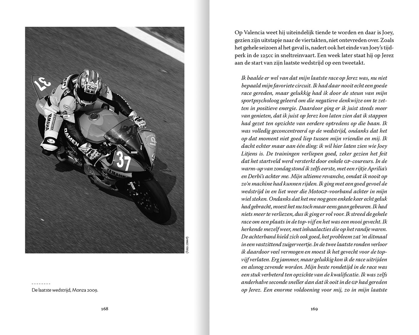 Jarno van Osch beschrijft de crash van motorcoureur Joey Litjens in 2009 die een eind maakte aan zijn carrière en volgt zijn revalidatieproces in tekst en beeld. Pocket, 240 pagina’s gedeeltelijk in kleur.