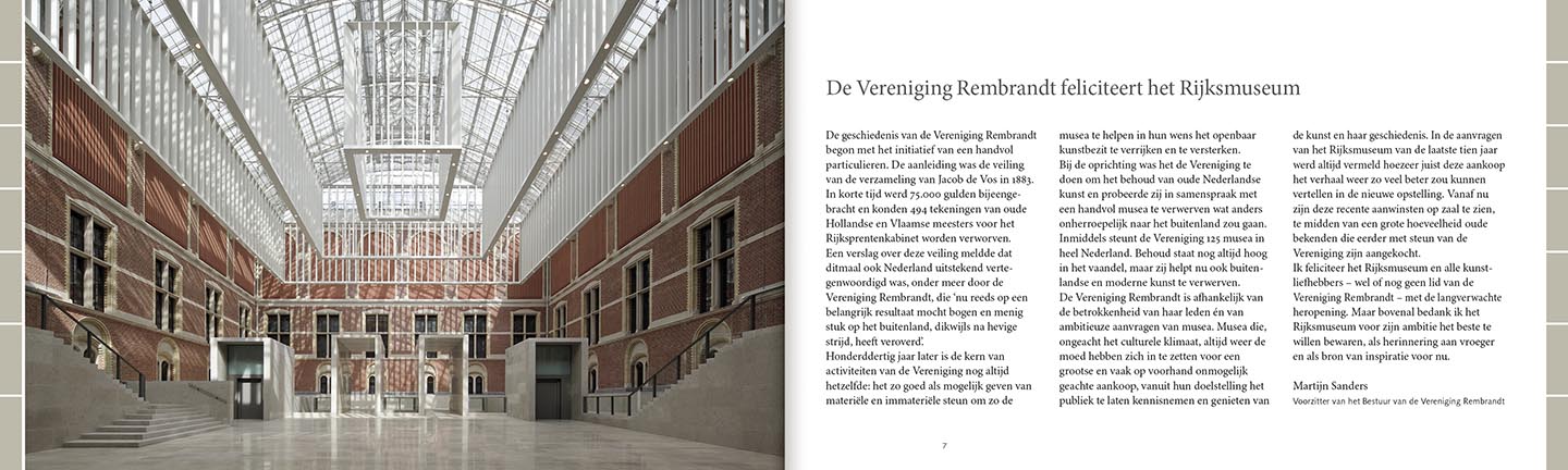 Boek met door de Vereniging Rembrandt gesteunde aankopen van het Rijksmuseum. Uitgegeven ter gelegenheid van de heropening van het Rijksmuseum in 2013.